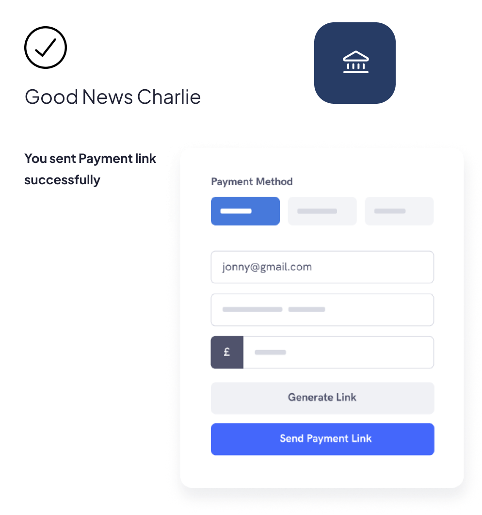 Create a unique, one-time-use link in seconds – simply enter the payment details, set the amount, and you’re ready to go.